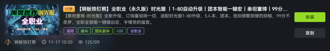 - 订阅方法:先搜索找到“全职业”(如下图),点击“复制”按钮,支付后可获得全职业全套GSE永久更新使用权。
