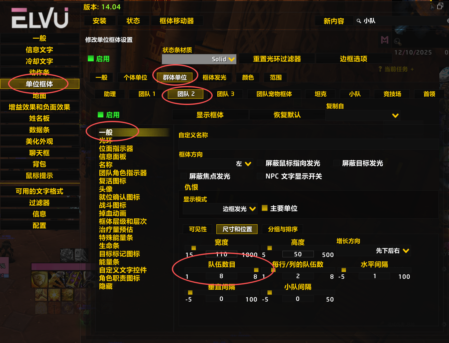 调整了团队框体可显示的小队数量,现已增至8队,可自行在如图位置调整(我的配置默认启用的团队2)