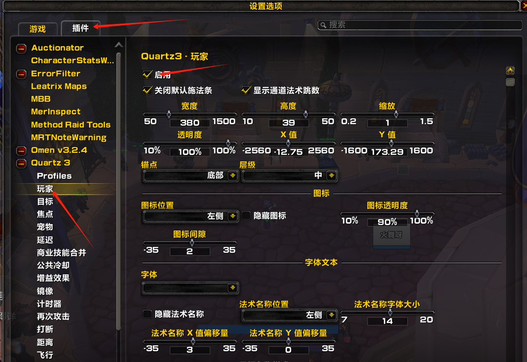 暗牧职业记得关闭Quartz施法条(不然会有两个施法条)其他职业不影响