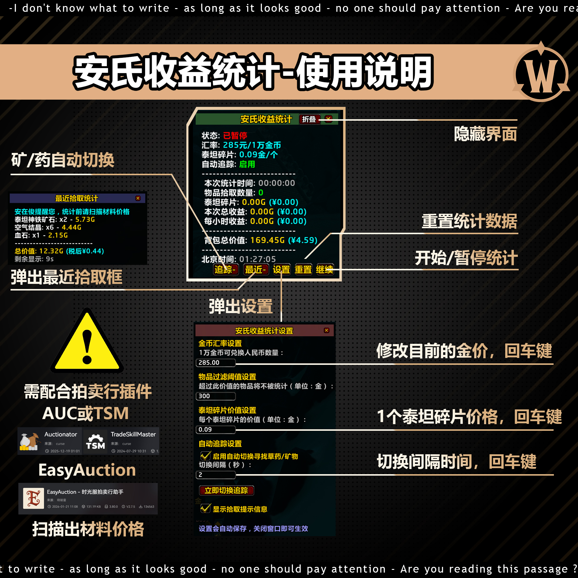【安在俊azj单购版】安氏收益统计,每次拾取换算¥,带泰坦碎片收益/支持Easy拍卖行插件/声音提示泰坦重铸 时光服)