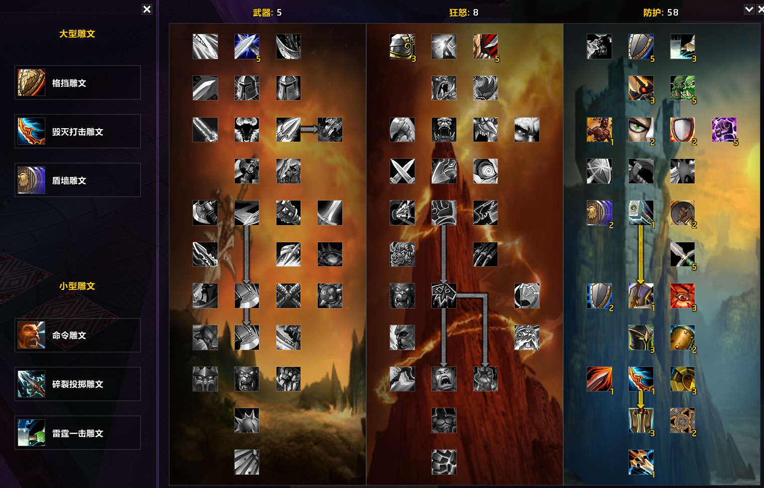 武器系第5排:长柄专精,要根据自己的武器类型调整右边天赋(长柄专精→单手斧,锤类武器专精→单手锤,剑类武器专精→单手剑)