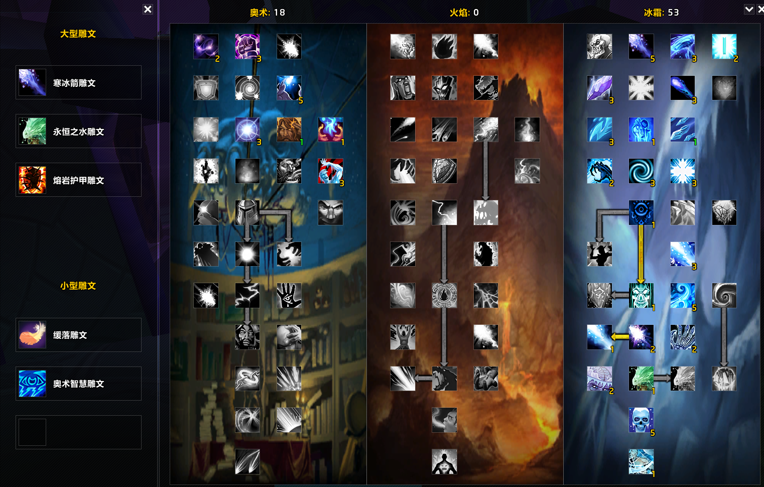 此天赋中,如果追求极限伤害,且自己能保证不容易OT,可将右上角2点减仇恨天赋(寒冬之幕)移至左边第三排第三个精神天赋(心灵学者)