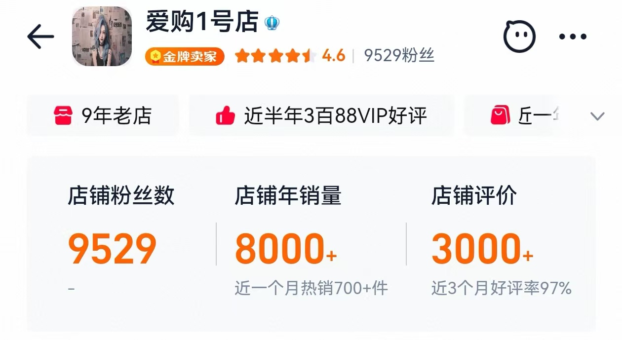 淘宝皇冠店铺已经累计卖出近万份,认准淘宝,闲鱼店铺都叫:爱购1号店