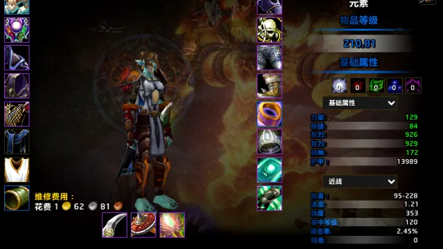 人物面板中显示当前修理装备所需费用