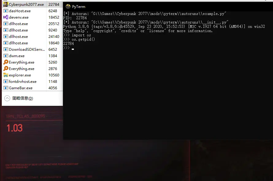 介绍 注入&生成一个Python控制台到游戏进程,支持pip功能。 为什么? Python: 使用 `ctypes` 进行交互式调用 Pip:第三方实用工具(keystone、capstone