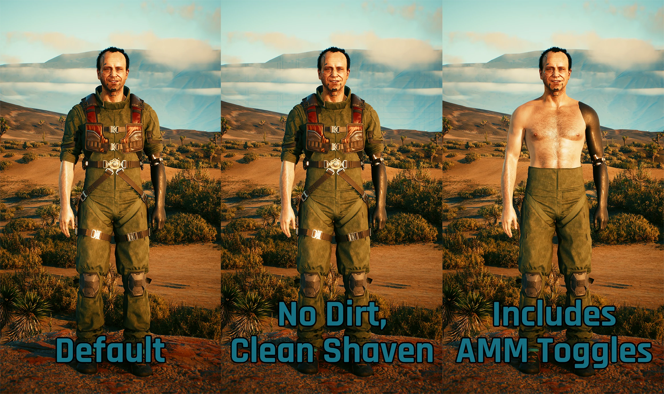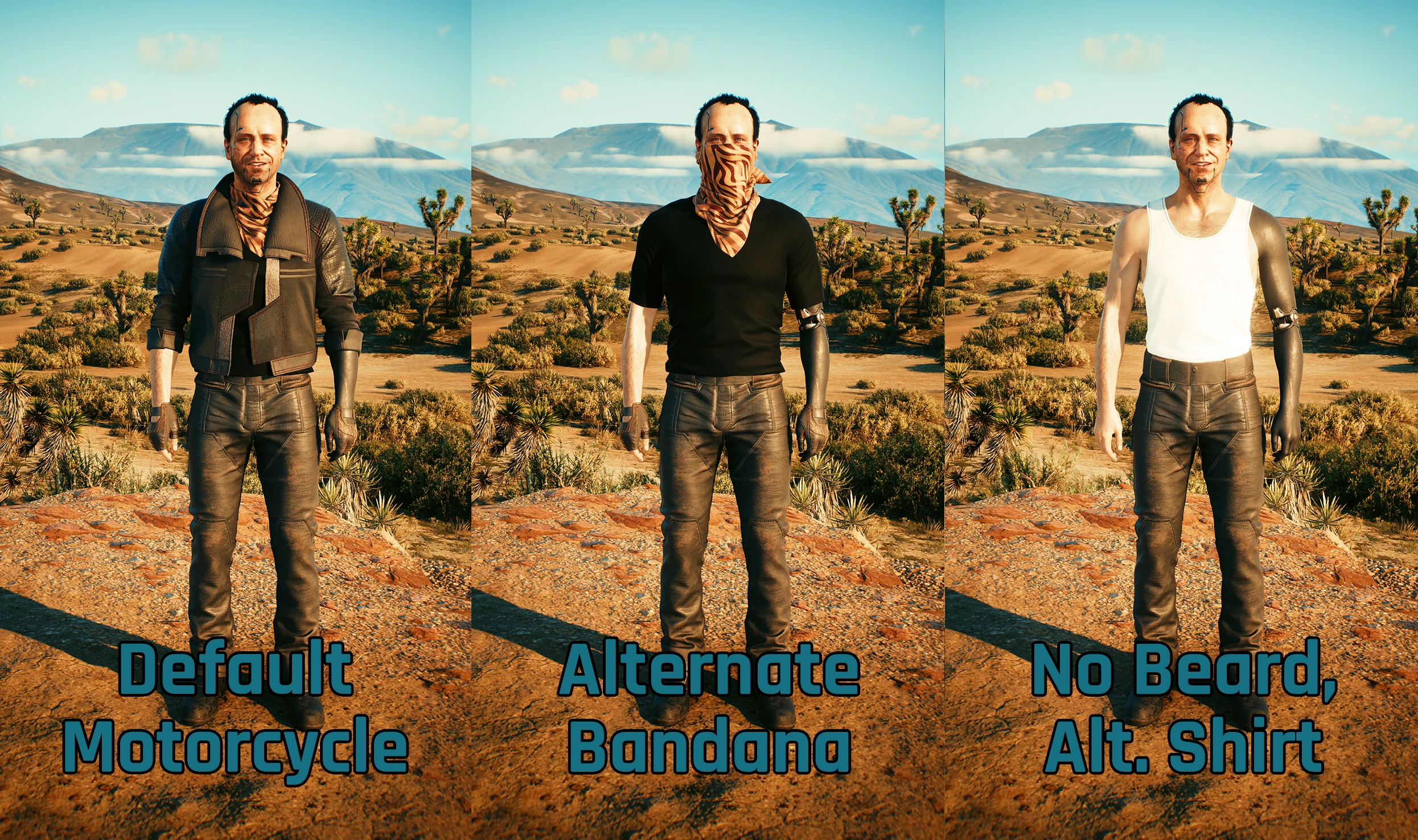 大家最爱的流浪者米奇偶尔也该脱下那件邋遢的工作服了。 包含全新的"摩托车手"套装:夹克、皮裤、头巾、骑行手套和两件衬衫选项;同时包含他标志性的默认套装,并修复了我制作的夹克模型;还为两套服