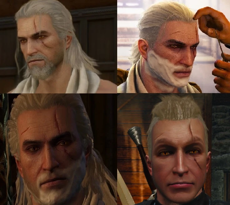大家可能都见过那个流行的梗图,一个男人剃掉胡子后看起来像个孩子。 现在我们可以在游戏中获得同样的效果,去理发店亲自体验一下吧。 这个修改将剃须后的杰洛特贴图替换成了一个更显年轻的版本。 由