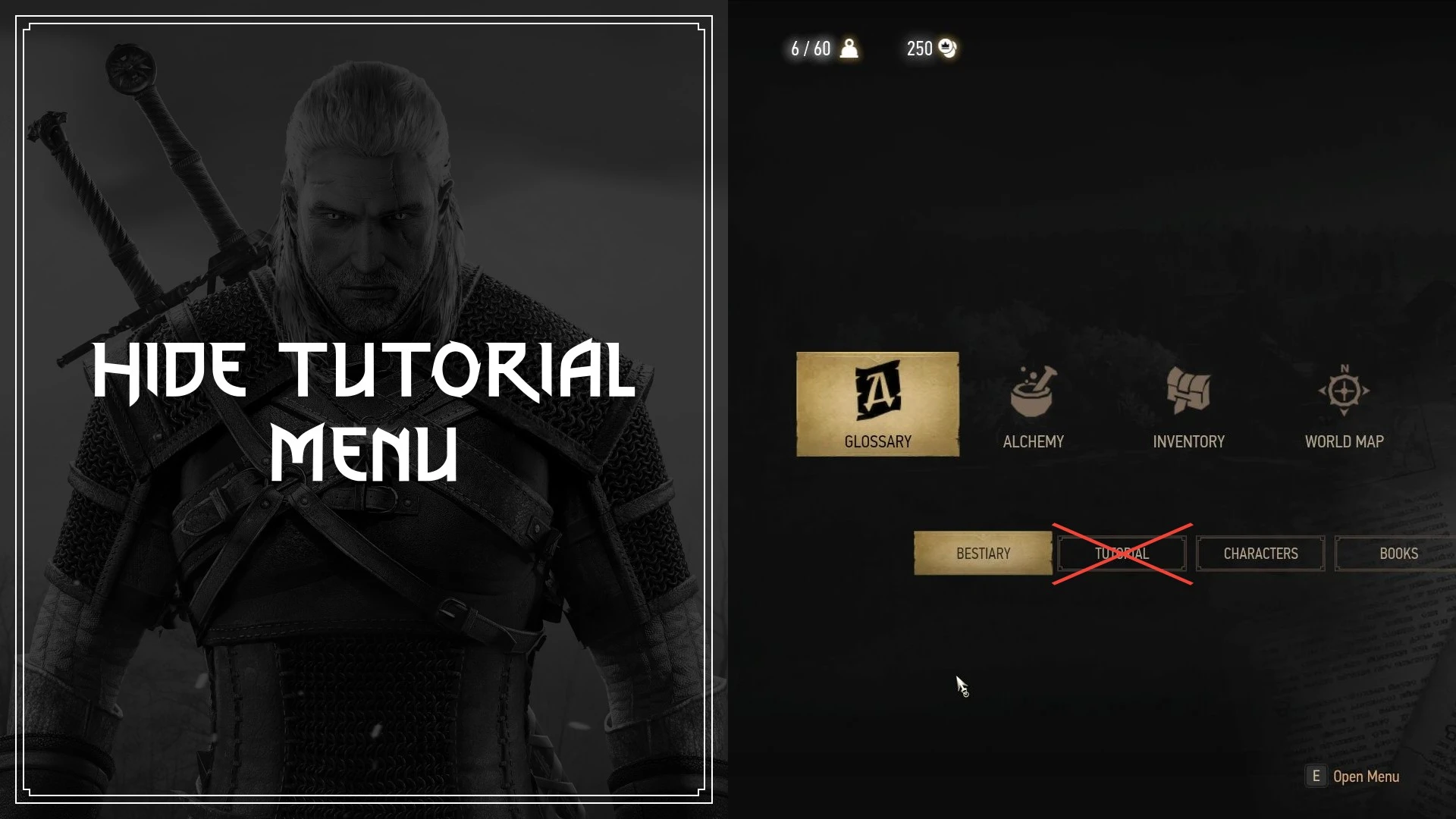 一个非常简单的模组,用于隐藏游戏内菜单中的教程面板。 这个子菜单可能仅在首次游戏过程中有用,但很快会变成不必要的杂乱内容。 安装此模组会将其从UI中隐藏, 在主游戏菜单条目上 在面板内时顶部的“点