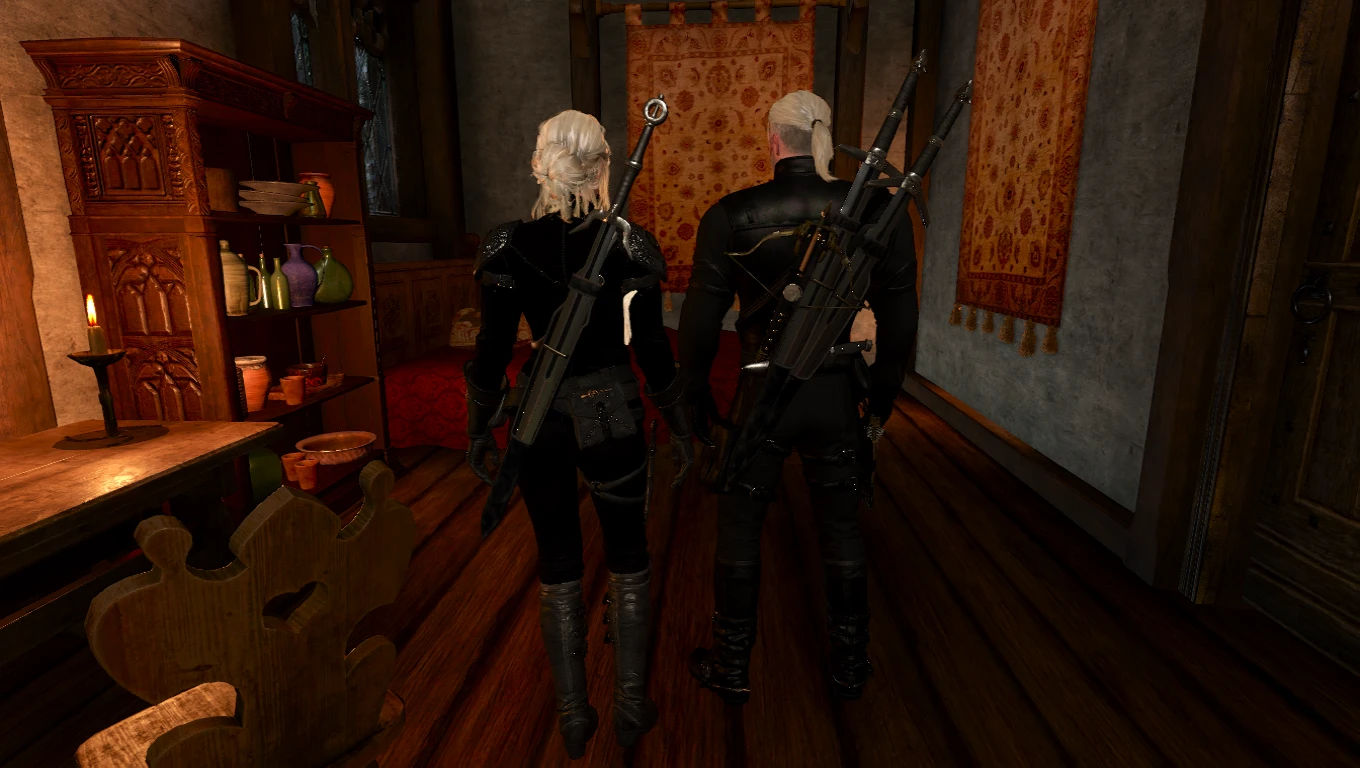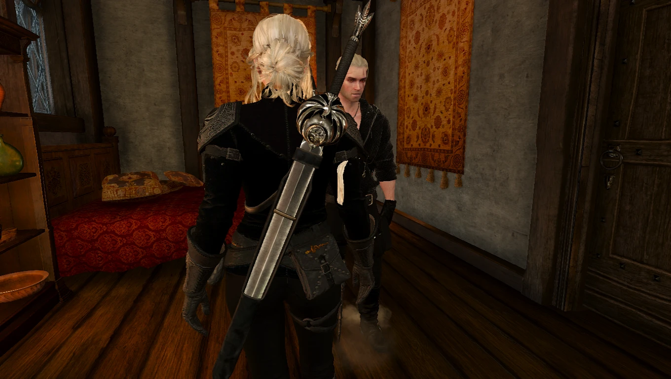 我已将初始装备(即凯尔莫罕装备,又称蝮蛇装备)中的护甲、靴子、手套、裤子以及双剑和剑鞘替换为我制作的暗黑狼装备2.0版本(新装备)。 - 我的模组 Dhubleidd 的所有新增内容 钢剑: