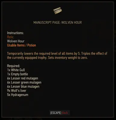 基本信息 原版狼人药剂可能是游戏中最无用的药水。此外,当使用移除物品等级的模组时,它的效果会变得毫无意义。 该模组的目标是改进狼人时间,使其在特定情境下(如常规药剂)使用时更具合理性。新增