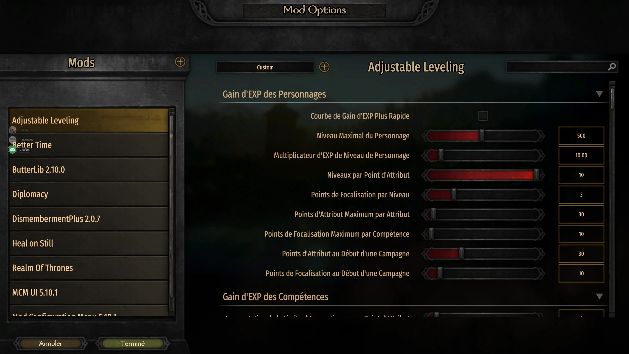 可调节等级调整模组的法语翻译 文件路径 Mount & Blade II Bannerlord\Modules\AdjustableLeveling\Mo