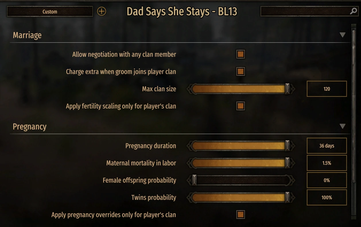 爸爸说她留下 你最好的NPC就是你自己的(游戏中的!)孩子。 你可以从他们出生起就按计划塑造他们。 把一个身经百战的女儿嫁给某个弱者,然后在多年后与她在敌对阵营交战,这令人沮丧。 我