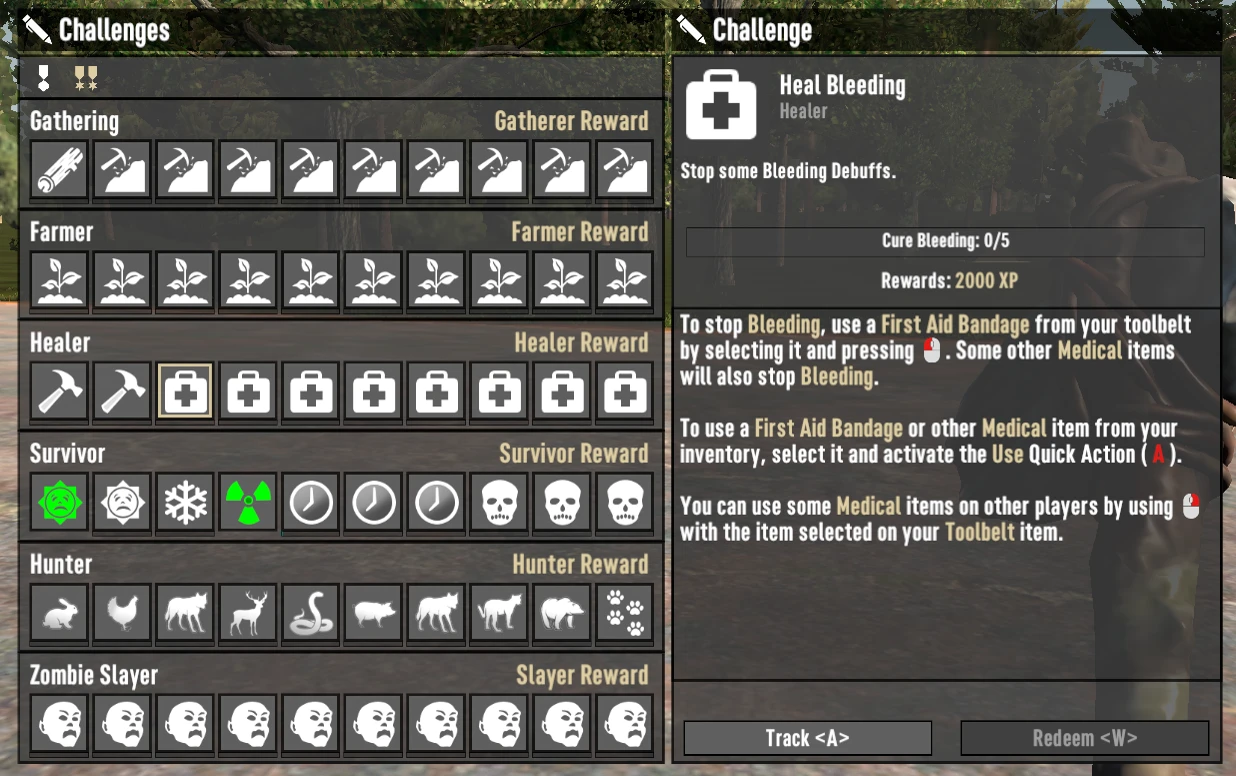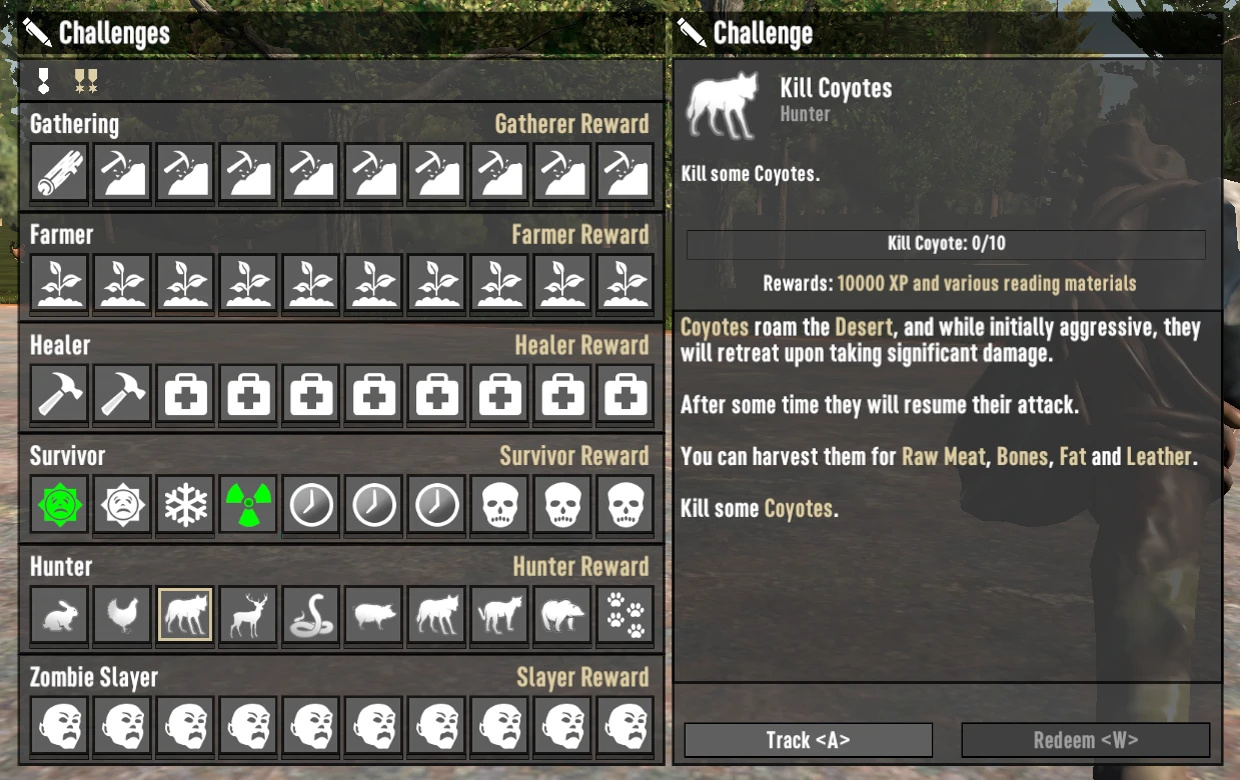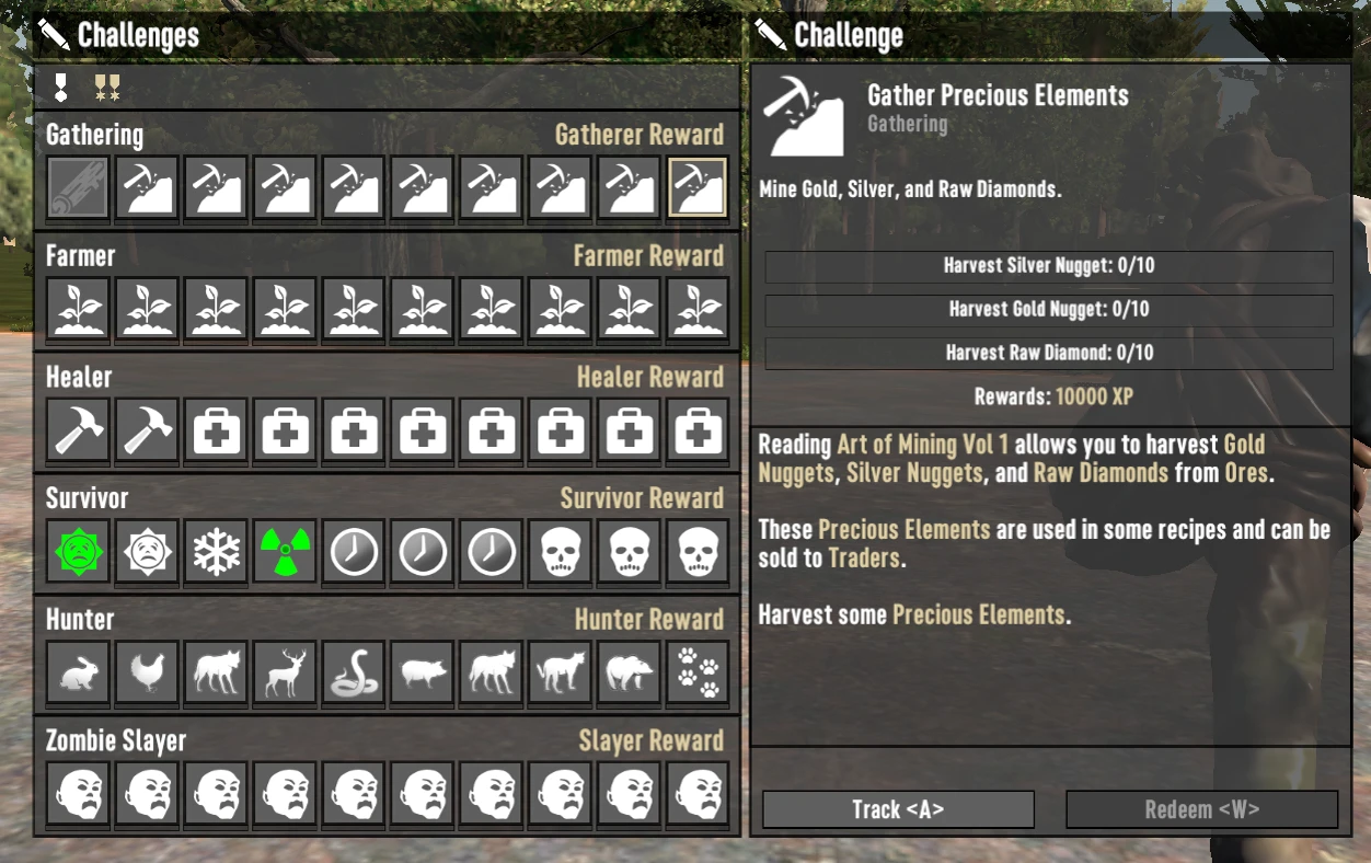 将需要收集的珍贵元素数量从50调整为10, 治愈不同伤害或疾病所需的次数因挑战而异, 需要击杀的动物数量从50减少到10, 完成每类僵尸击杀任务的数量从50降至10, 以便玩家能在合理