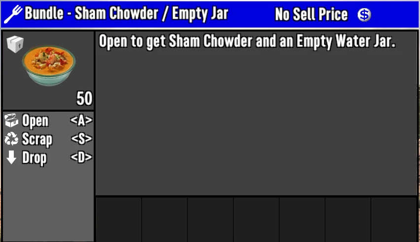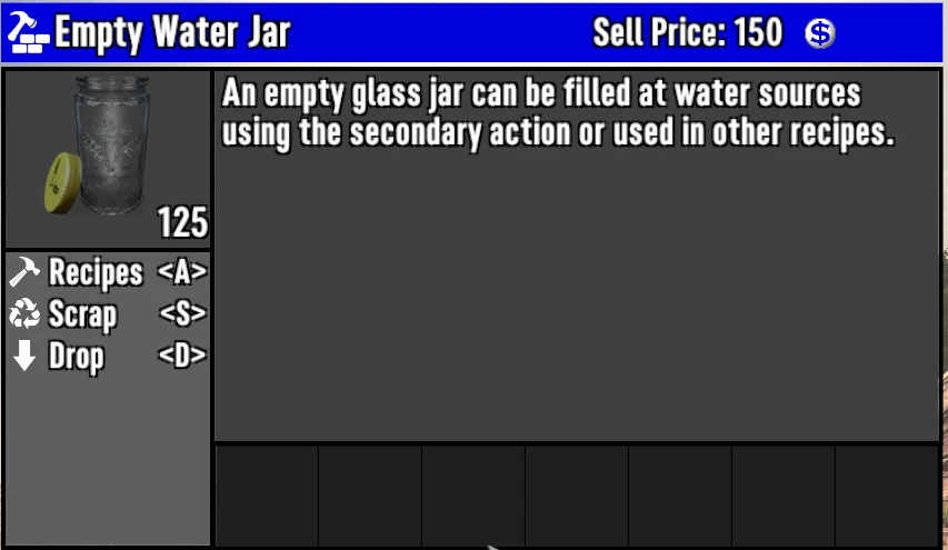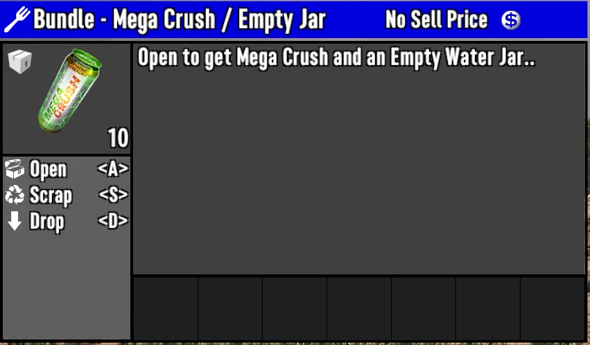 这个modlet重新添加了空罐子和备受喜爱的空玻璃罐。我尽力使其接近A20版本,并增加了在吃喝食物时能回收罐子和玻璃罐的功能。 此外,配方会返还Sham Chowder,而Mega Crush配方会返