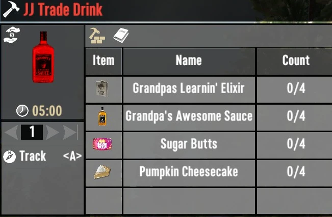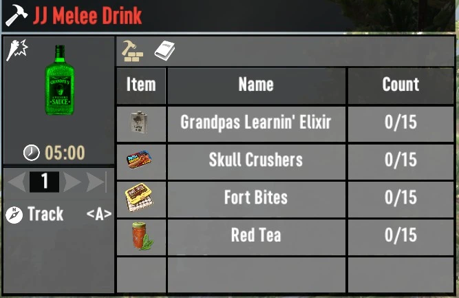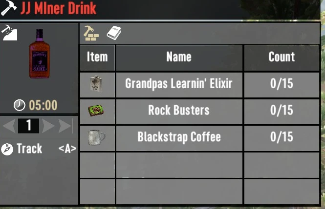 JJTradeDrink 一种持续15分钟的饮品,拥有你所需的所有交易增益效果。 JJ矿工饮料 一种持续1小时的饮品,拥有采矿所需的所有增益效果。 JJ近战饮料 持续1小时的饮品,包含