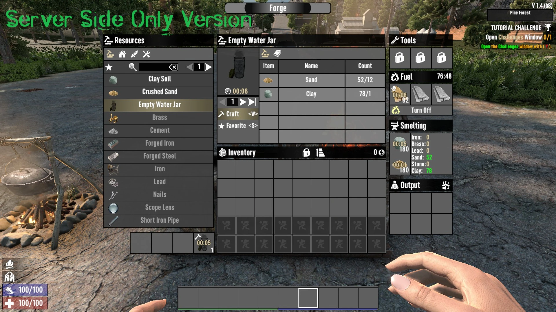 这个模组恢复了空罐子以及用罐子收集水的能力 可以在锻造台制作空水罐,用于收集浑浊的水💧。 还可以将雪球煮沸成浑浊的水,还原经典的水机制。 两种选择:(见图片) 仅限服务器端版本(空罐子的深色
