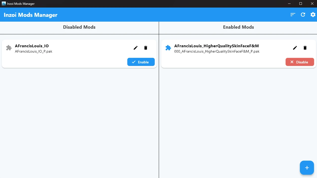 Inzoi模组管理器 管理您的inZOI模组的工具(仅适用于.pak格式模组) 开源 未来更新计划支持打印机模组、皮肤等内容,目前仅支持.pak格式的模组。 功能 轻松安装模组 - 只需将PA