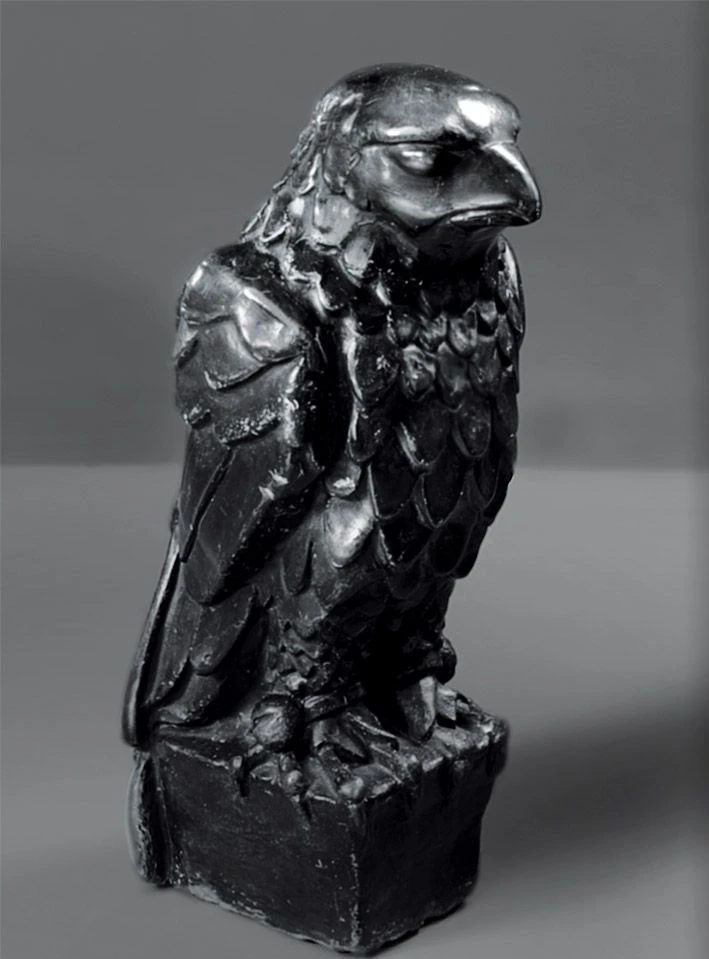 马耳他之鹰。这是同名电影《约翰·休斯顿-亨弗莱·鲍嘉》中的一尊小雕像。 它是历史上最具辨识度和最令人梦寐以求的电影纪念品之一。据传,赌场大亨史蒂夫·韦恩曾以410万美元的价格购得它。据说它与