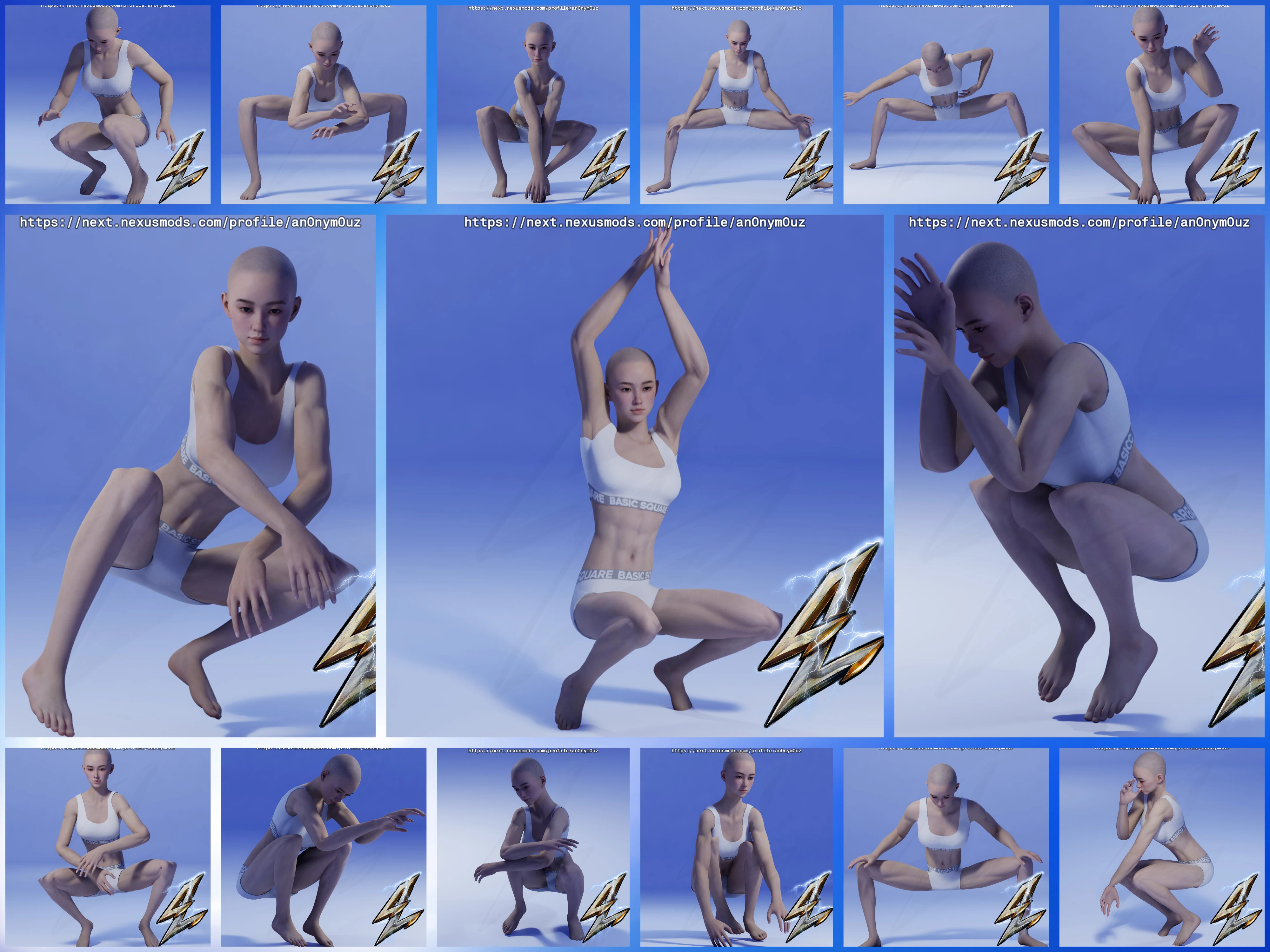 30倍静止姿势 - 深蹲包 01 这是一个包含30个静态姿势的包 - 风格:蹲姿/蓄力等。 _____________________________________________________