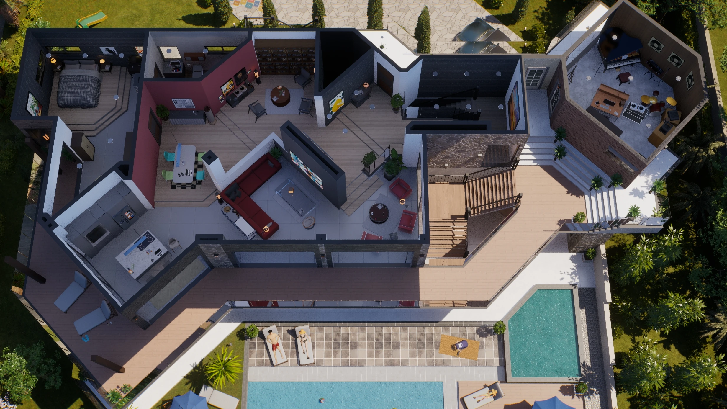 嘿呀 我来分享我的第二个作品啦!✨ 又一次以《GTA V》为原型,这里是富兰克林豪宅! 在建造过程中我发现, 这里几乎有一半是闲置空间, 所以我新增了3间卧室和浴室, 现在它升级成了豪华家族别墅